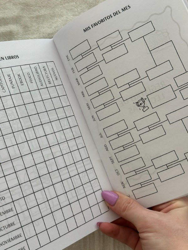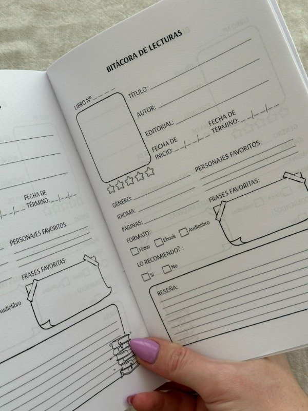 Nuestro registro literario cuenta con 30 plantillas para completar tus lecturas anuales, hojas para escribir tus objetivos anuales, TBR, ranking anual, biblioteca para pintar y hojas para anotar tus pensamientos sobre tus lecturas.